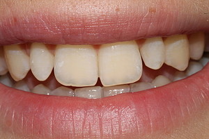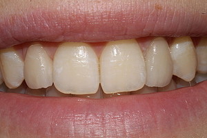 Zapfenzähne 12,22 mit Veneer´s versorgt nachher